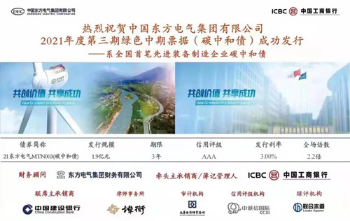 本網(wǎng)訊 為積極服務(wù)國(guó)家“碳達(dá)峰、碳中和”目標(biāo),金融助力企業(yè)綠色低碳轉(zhuǎn)型,東方電氣集團(tuán)于12月23日成功發(fā)行全國(guó)首單先進(jìn)裝備制造行業(yè)碳中和債券,募集資金專項(xiàng)用于支持所屬企業(yè)風(fēng)光儲(chǔ)綜合能源項(xiàng)目,推動(dòng)能源綠色低碳發(fā)展。