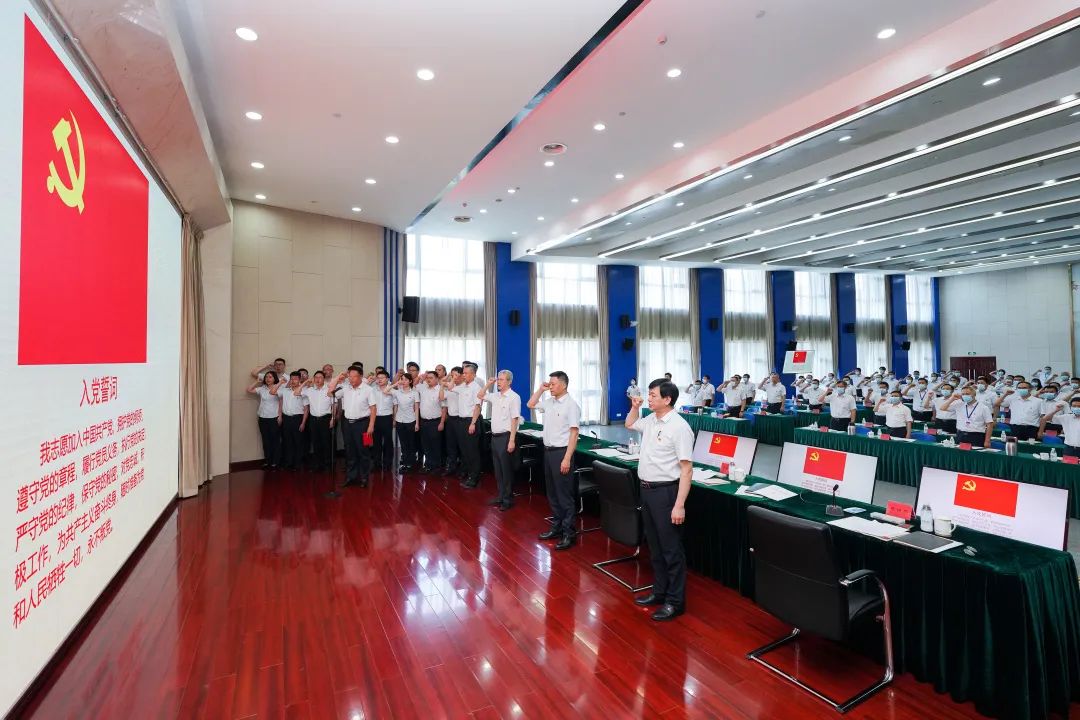 面向黨旗,集團(tuán)公司新黨員在各個會場進(jìn)行了入黨宣誓。全體黨員重溫了入黨誓詞。
