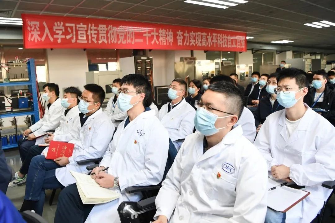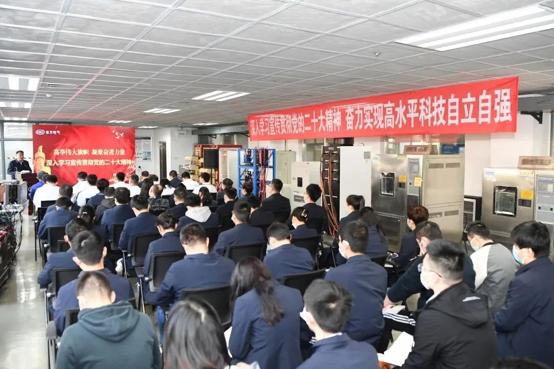 本網(wǎng)訊 為引導全集團廣大干部職工切實把思想和行動統(tǒng)一到黨的二十大精神上來,根據(jù)東方電氣集團黨組統(tǒng)一部署,11月22日,集團公司“高舉偉大旗幟 凝聚奮進力量”黨的二十大精神宣講隊首場宣講報告會在東方研究院新能源電池測試實驗室舉行,用“行走的課堂”講述“我們身邊”拼搏奮進爭先的鮮活故事,激勵科研工作者以實干搶抓創(chuàng)新先機,為加快實現(xiàn)高水平科技自立自強貢獻“東方”力量。