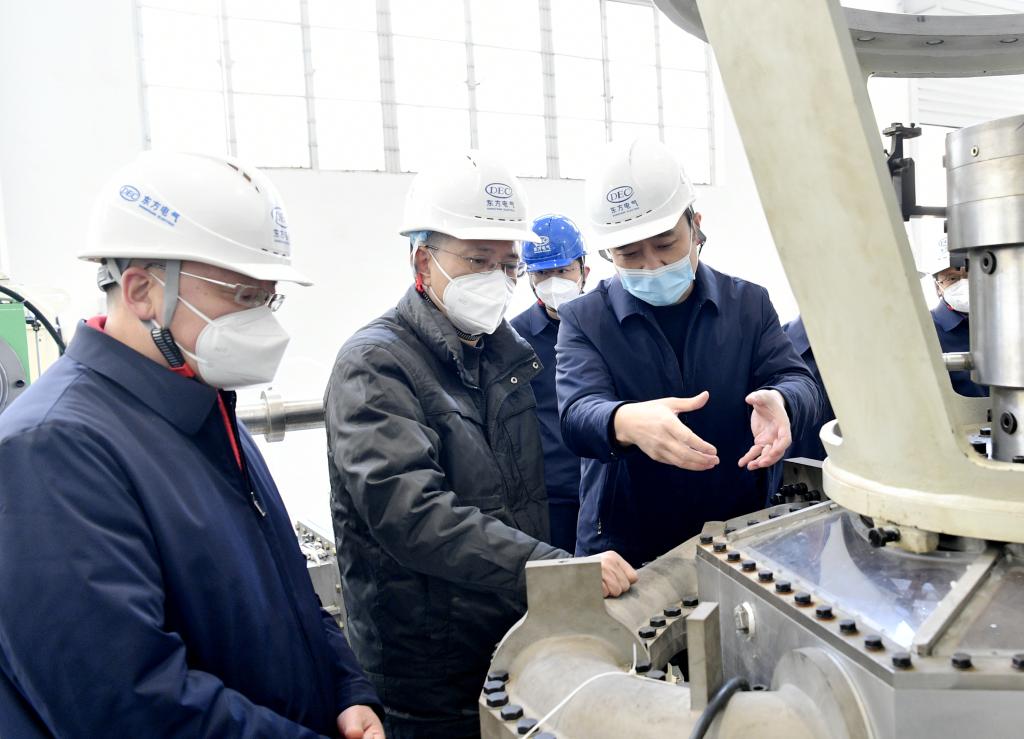 在東方電機,徐鵬深入企業智能沖擊式水輪機模型試驗臺、金沖分廠、清潔能源裝備重型制造數字化車間等地,詳細了解企業科研攻關、數字化轉型、綠色高端制造等情況。強調企業要加快實施創新驅動發展戰略,以國家戰略需求為導向,集聚力量進行原創性引領性科技攻關,把關鍵核心技術牢牢掌握在自己手中。要持續推動發展方式綠色轉型,打造更多高端化、智能化清潔能源裝備,著力推動高質量發展。
