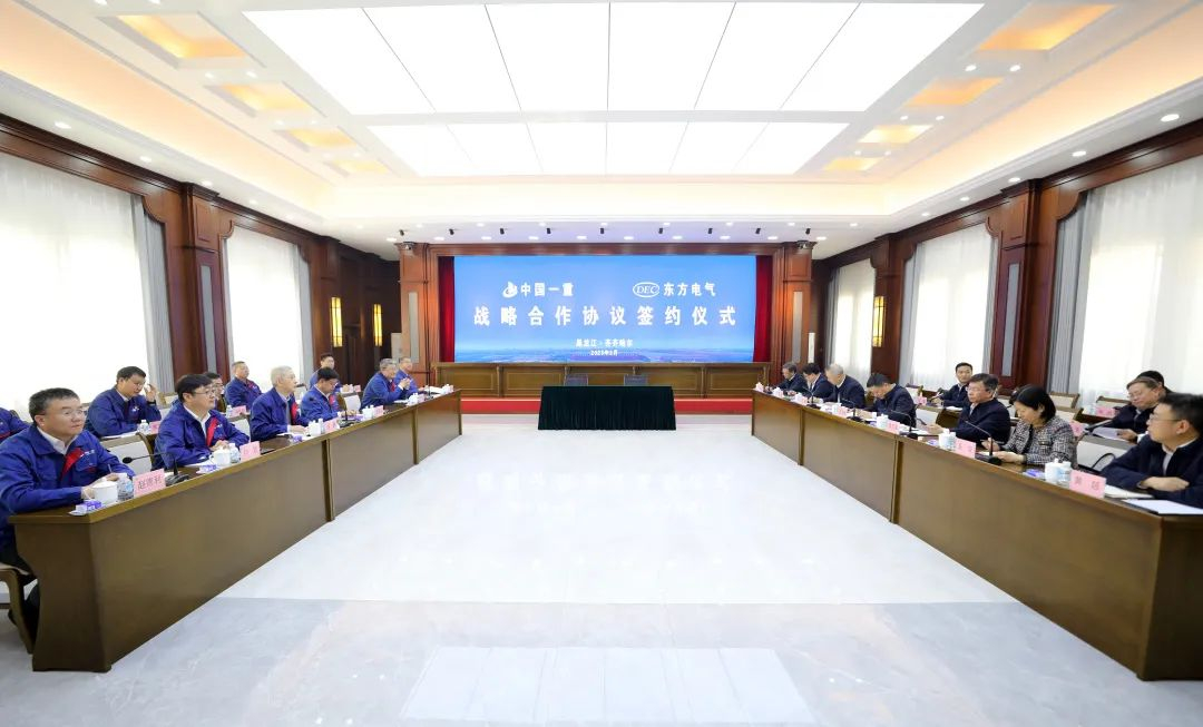 東方電氣集團黨組成員、副總經理李忠軍,中國一重黨委常委、總會計師李沖天代表雙方簽字。