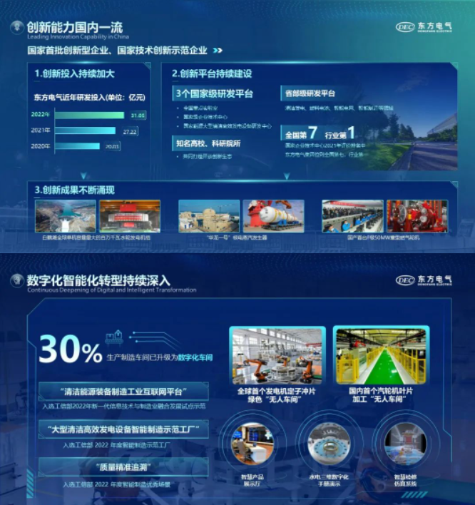 2022年,公司堅(jiān)持科技創(chuàng)新戰(zhàn)略引領(lǐng),制定發(fā)布中長期科技創(chuàng)新規(guī)劃;強(qiáng)化創(chuàng)新平臺建設(shè),構(gòu)建領(lǐng)先的水電、氫能等產(chǎn)業(yè)創(chuàng)新聯(lián)合體。科技創(chuàng)新成果突出,完成國內(nèi)首臺自主知識產(chǎn)權(quán)F級50MW重型燃?xì)廨啓C(jī)等一批科技創(chuàng)新成果。公司堅(jiān)持綠色轉(zhuǎn)型與數(shù)字化轉(zhuǎn)型協(xié)同發(fā)展,發(fā)布碳達(dá)峰碳中和行動方案、數(shù)字化轉(zhuǎn)型行動計劃,創(chuàng)新驅(qū)動企業(yè)核心競爭力不斷提升。