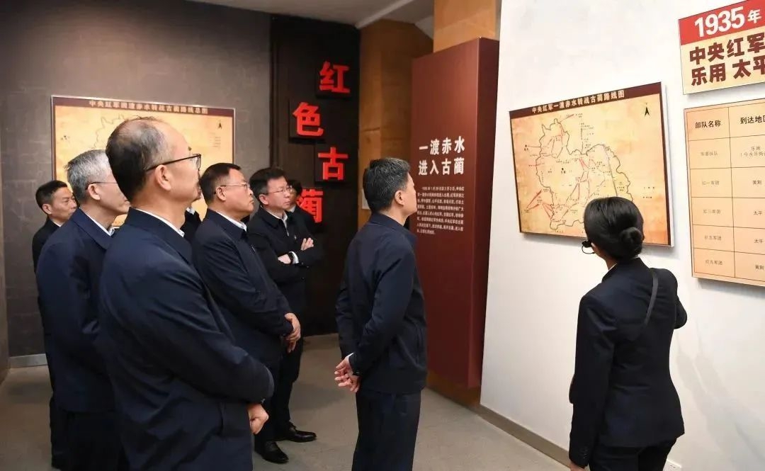 追尋紅色足跡,俞培根一行來到中國工農紅軍四渡赤水太平渡陳列館、毛澤東四渡赤水紀念館等地,通過現場教學接受了一次全面而深刻的紅色洗禮。在太平渡口紀念碑前,面對黨旗,俞培根帶領在場黨員領導同志一起重溫入黨誓詞。在俞培根領誓下,鏗鏘有力的宣誓聲響徹赤水河畔,讓現場所有人都深受感染,不斷叩問初心、守護初心,不斷堅守使命、擔當使命,始終做到初心如磐、使命在肩。