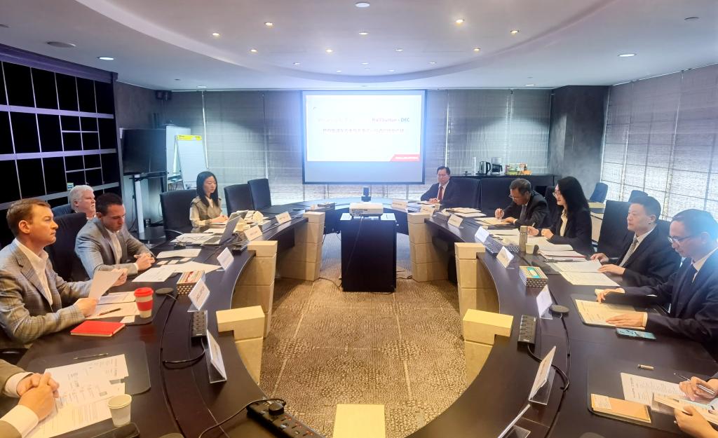 在哈里伯頓東半球總部,俞培根與哈里伯頓東半球總裁Shannon Slocum就鉆機服務領域、數字化技術、節能減碳、碳捕捉等領域合作展開廣泛深入的探討。俞培根感謝哈里伯頓對東方電氣鉆井產品和服務的信任與肯定,表示東方電氣將致力于研制智能鉆機,力爭成為世界一流的鉆井承包商,希望進一步加強與哈里伯頓協同發展,提升在能源領域的技術實力和國際競爭力,力爭在全球市場上實現合作共贏。Shannon Slocum先生充分肯定雙方合作成果,期待與東方電氣開展更廣泛且深入的合作,共同為能源行業的可持續發展注入強勁動力。雙方一致認為,本次訪問為東方電氣和哈里伯頓進一步加強合作奠定了堅實基礎。