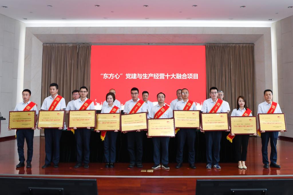 面向黨旗,新黨員代表入黨宣誓,全體參會黨員重溫入黨誓詞。會議發布了《集團公司黨建與生產經營深度融合“四級五步五法”工作導則》,表彰了集團公司“東方心”黨建與生產經營十大融合項目和十大融合模范。