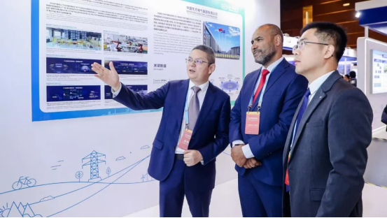 本屆大會,東方電氣集團展臺通過“六電六業”及“鏈動全球”展示模塊,集中呈現了近年來研制的高端清潔能源裝備在構建新型能源網絡中作出的積極貢獻、在全球能源互聯網領域取得的最新成果。在東方電氣集團展臺,自主研制的500兆瓦沖擊式水電轉輪、26兆瓦級海上風電機組等創新產品模型吸引了津巴布韋、多米尼加等國家眾多專業觀眾。